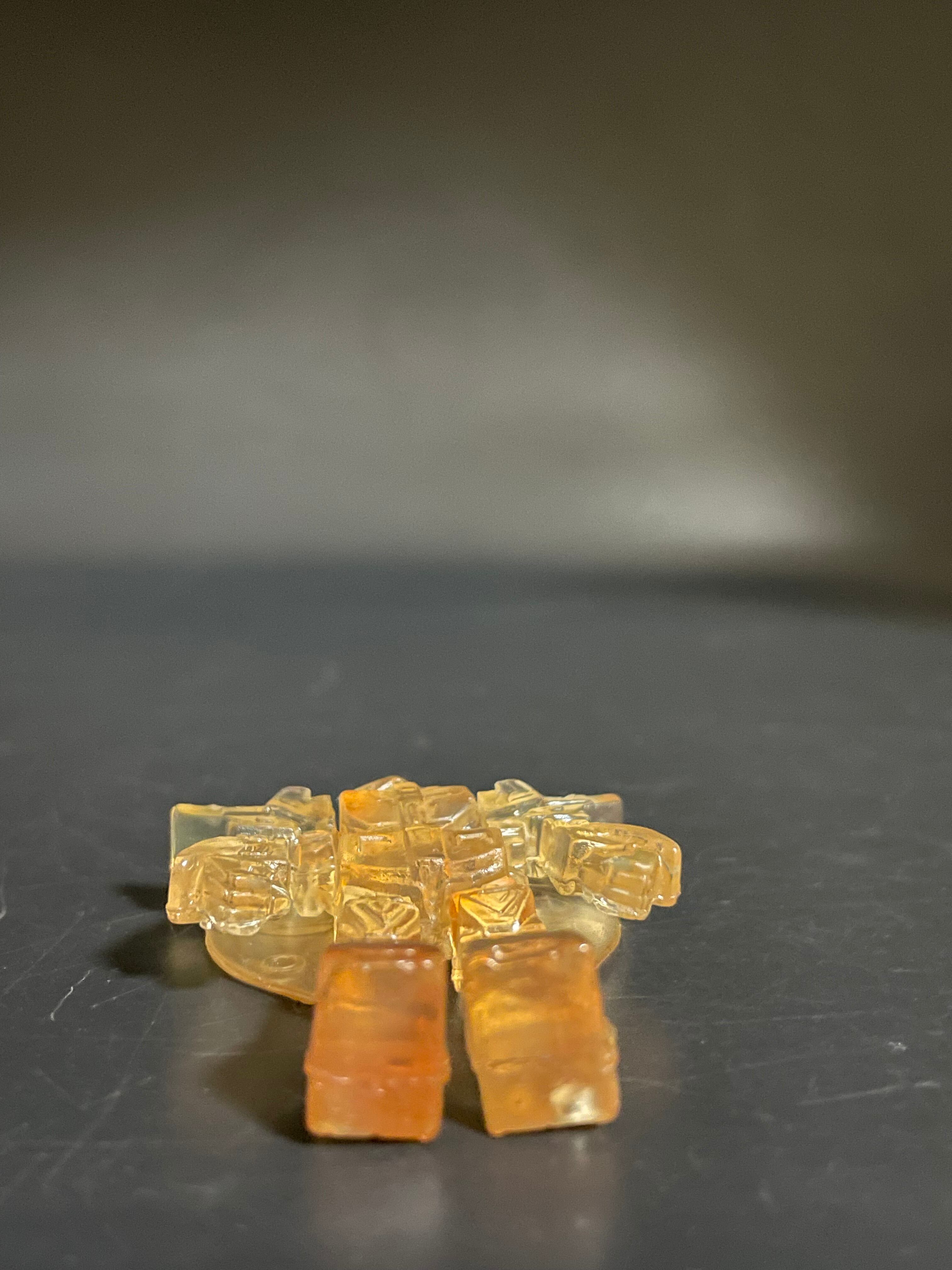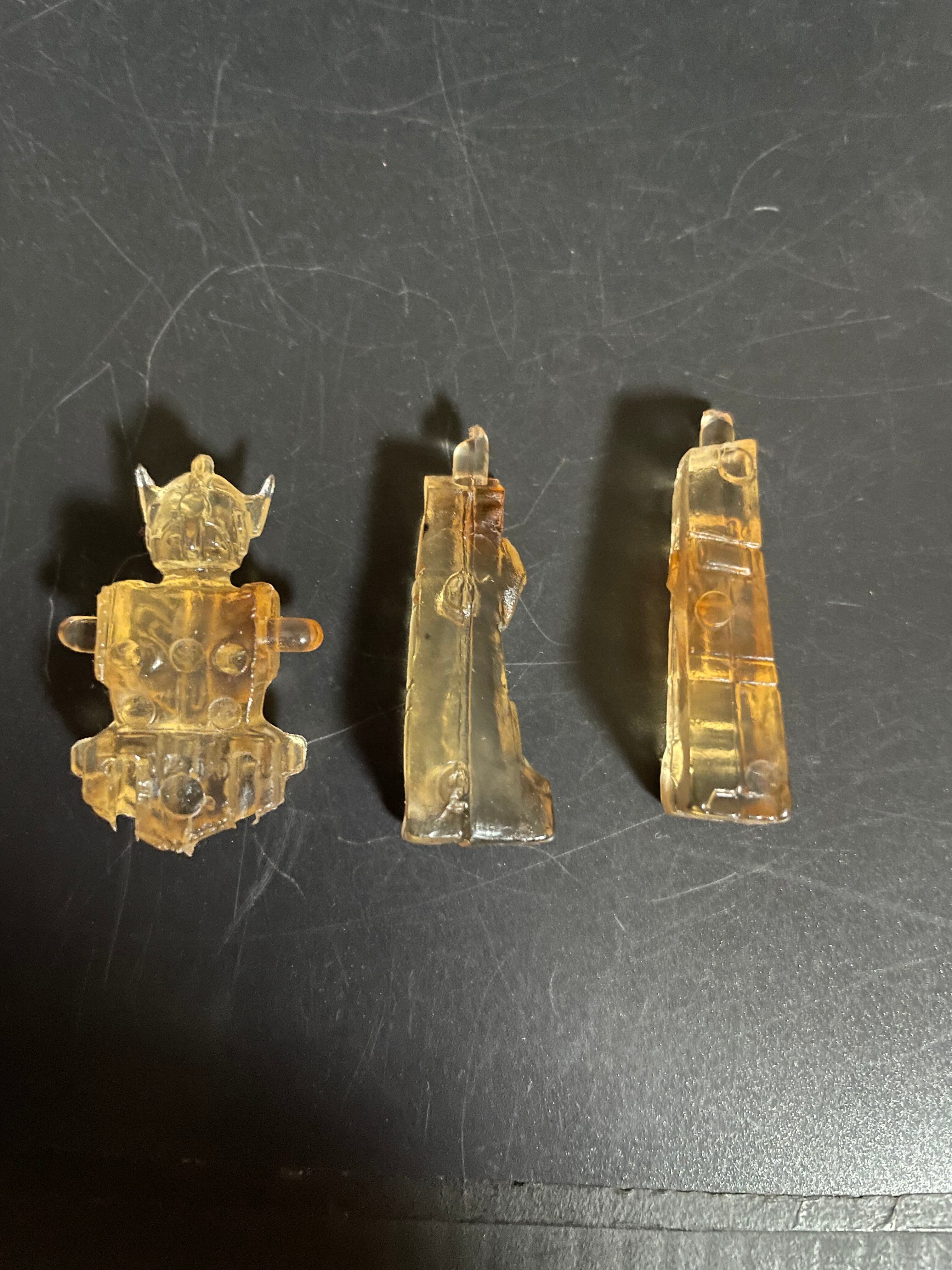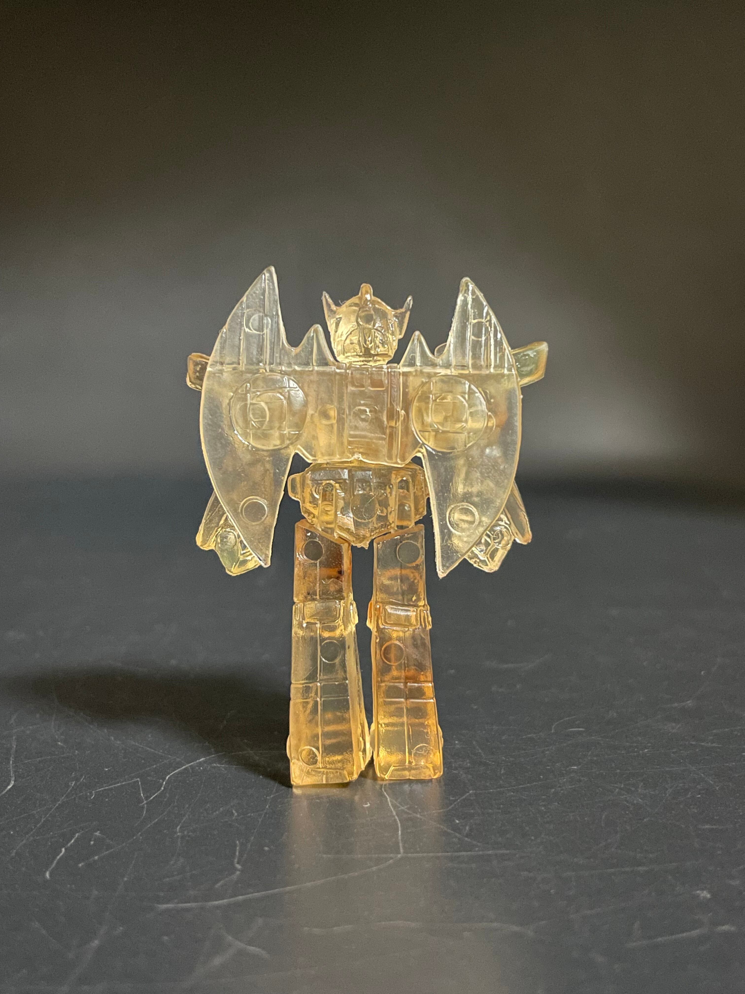 中古品です。詳細不明なんですがアクロバンチに見える消しゴムのフィギュアです。クリア素材なんですが所々に赤い塗料が付いていて赤く染まって見えます。コスモスが権利をとってガチャガチャの商品を作っていたそうですがこれがそれに該当するかは不明です。