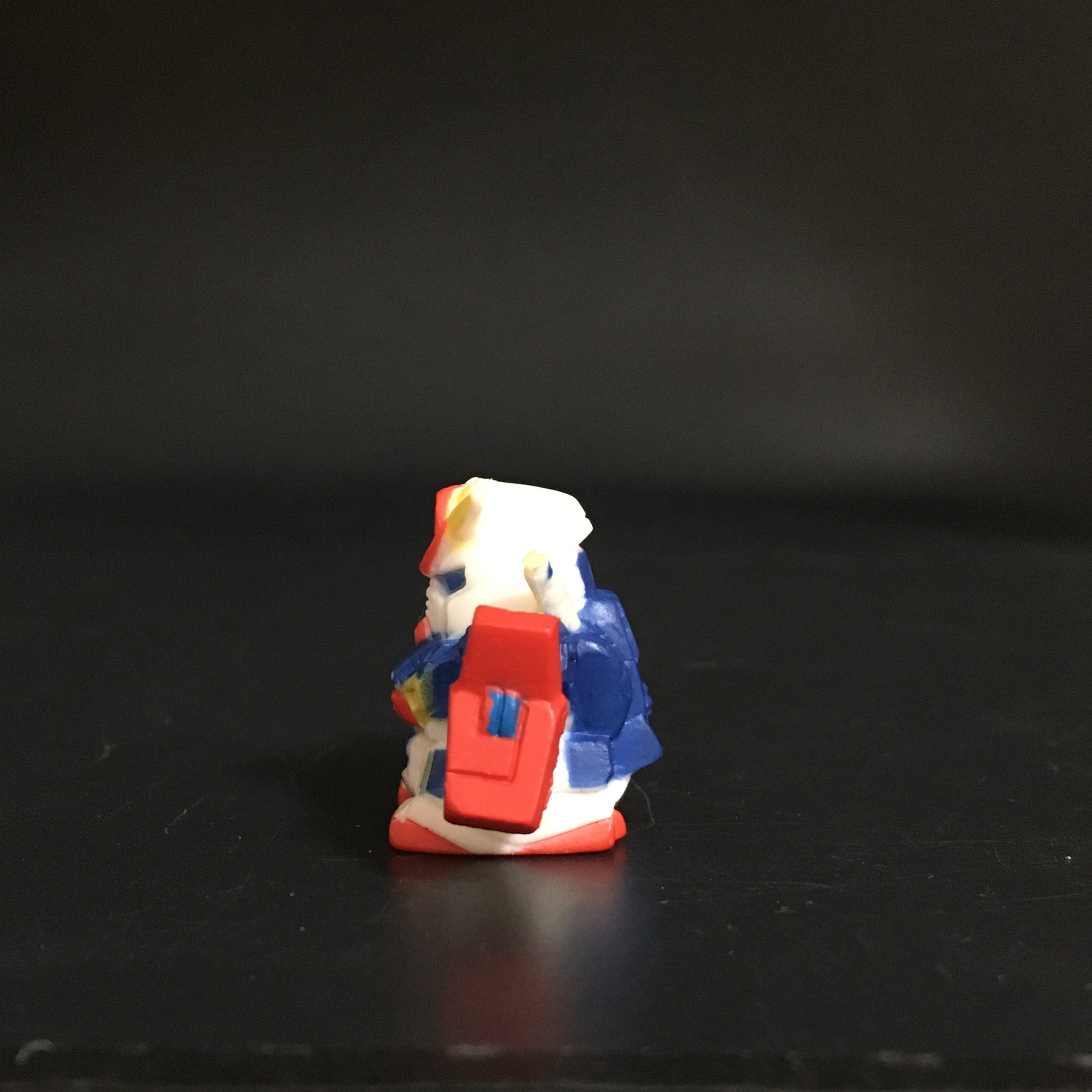 彩色版のガンダムZZです。アマダから出ていたフルカラーのガン消しのようです。足の裏に汚れというか色移りのようなものがあります。他にも細かい傷や塗装のスレなどがあります。