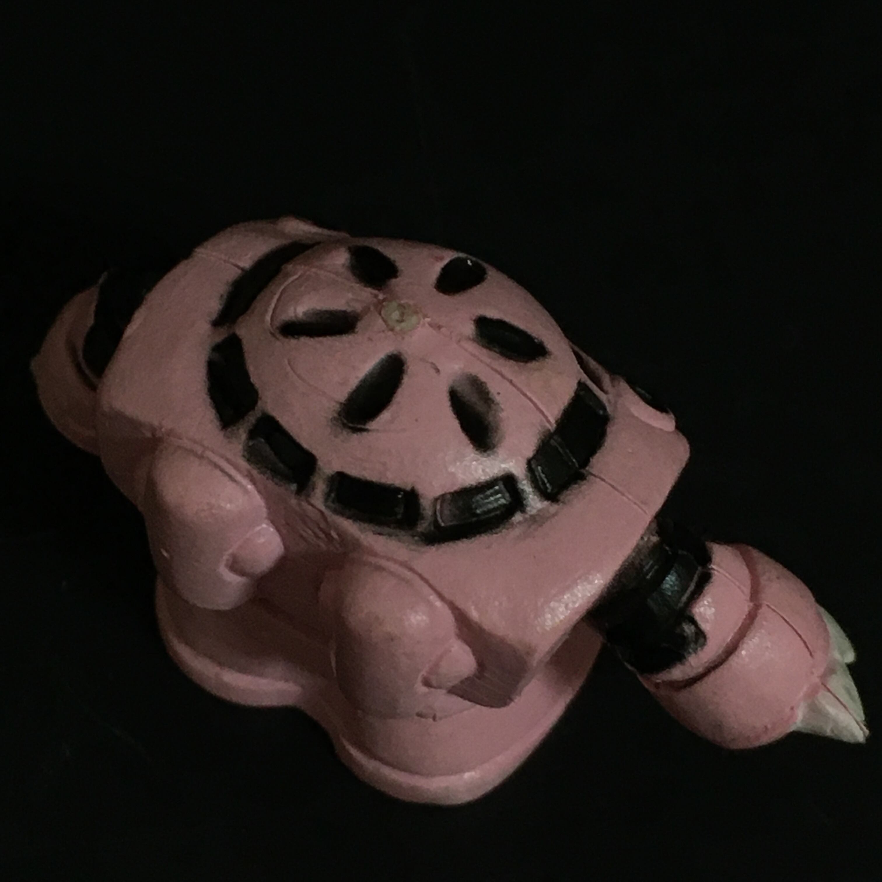 彩色版のシャア専用ズゴックです。アマダから発売されていたフルカラー版のようです。足の裏に色移りのようなものがあります。他にも全体的に細かい傷や塗装のスレ、色移りなどもあります。古い商品となります。思わぬ不備や記載のない不備があっても返金対応は行いません。画像をよく見て判断してください。