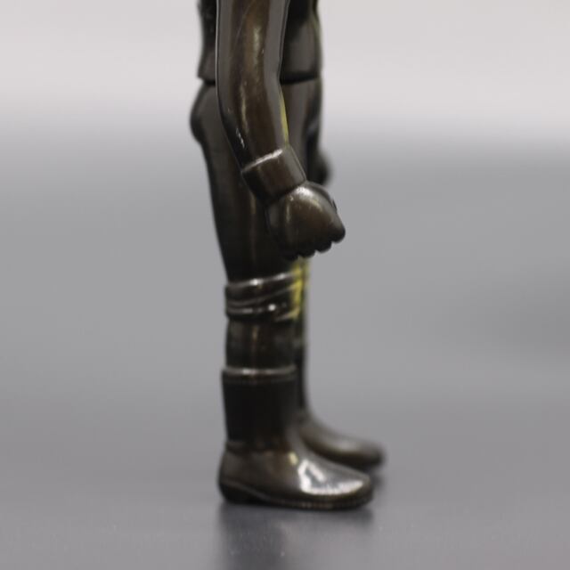1979年に放送された特撮ドラマ「炎の超人メガロマン」に登場する悪役・黒星族 黒星兵士のミニソフビです。塗装のスレ、色落ちが見られます。経年によるイタミ、汚れも見られます。背中に茶色い点の汚れが数点付着しています。